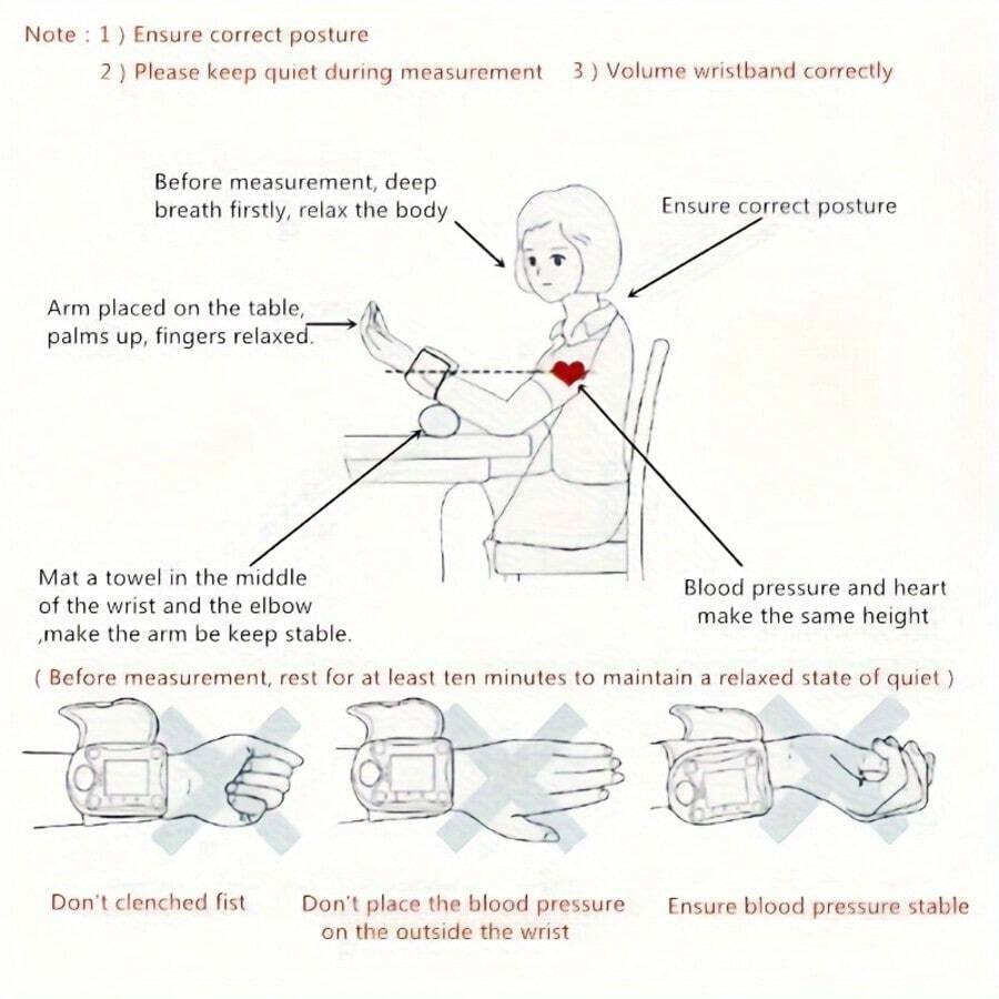 Digital Wrist Blood Pressure Monitor – LCD Screen, Voice, Portable Case Pulse Counter 5 Color
